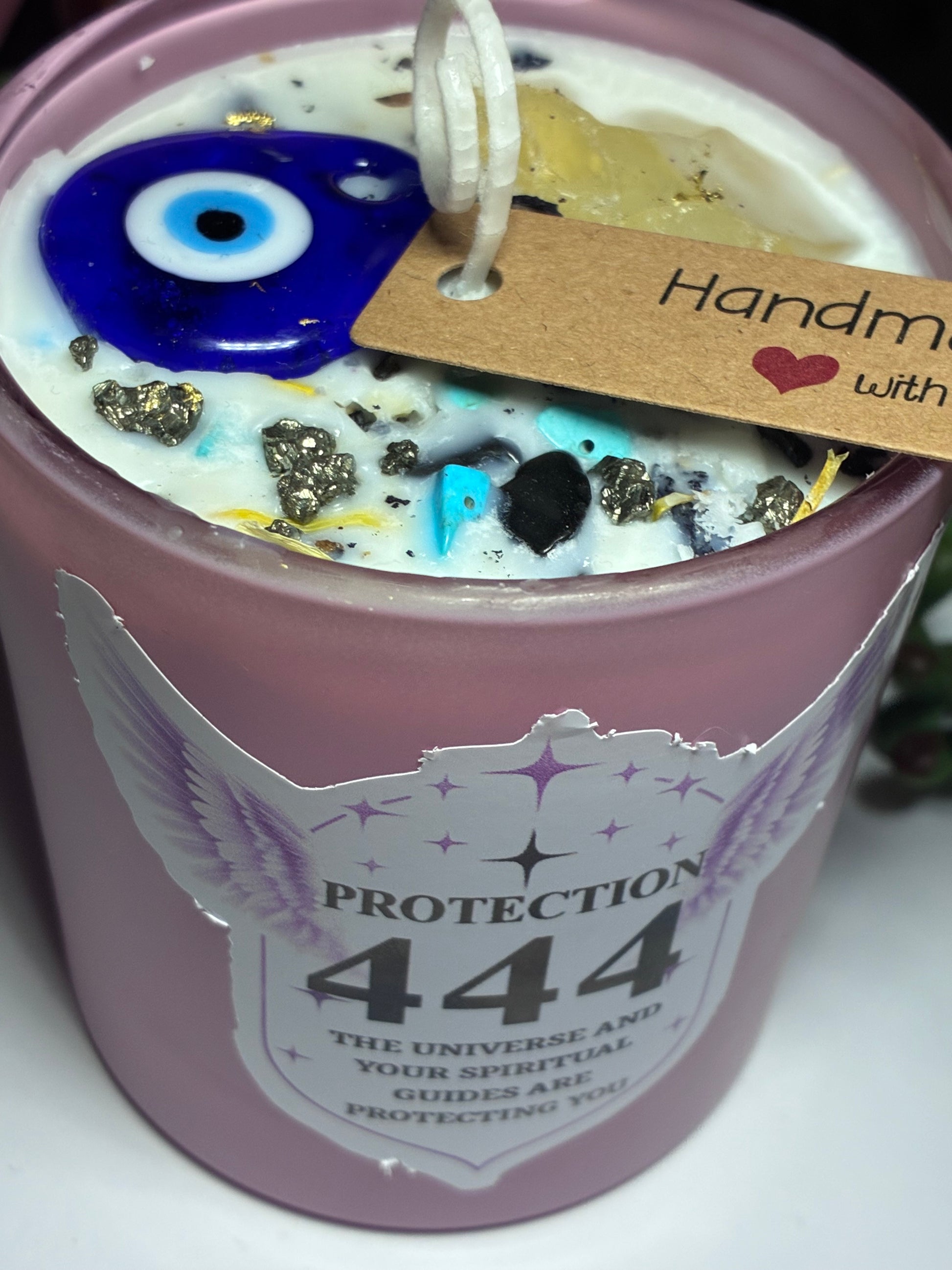 The 444 Protection Manifestation Candle is your spiritual shield and manifestation ally. Infused with powerful protective crystals and sacred ingredients, this candle creates a fortress of positive energy while helping you manifest your desires from a place of safety and stability.