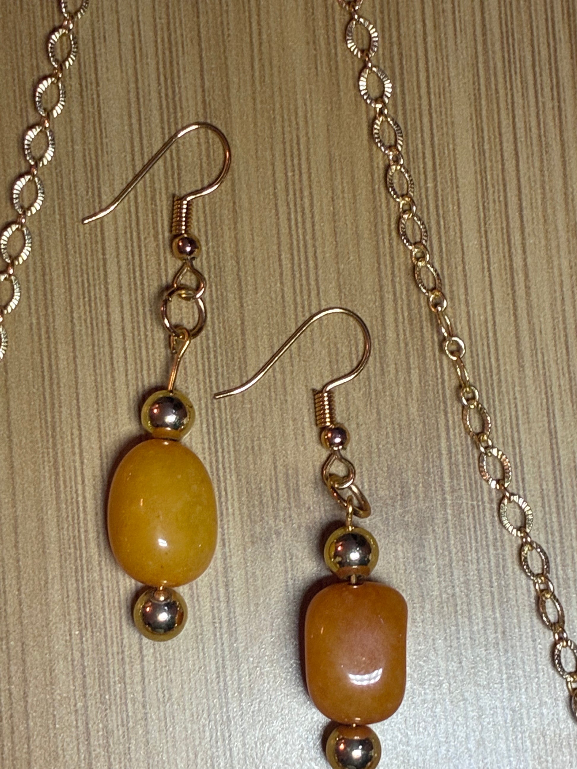 The Orange Agate Dream Necklace/Earring Set is a complete ensemble featuring gorgeous orange agate stones paired with luxurious 18k gold beads and chain. This matching set brings together natural beauty and elegant craftsmanship for a look that's both vibrant and sophisticated.